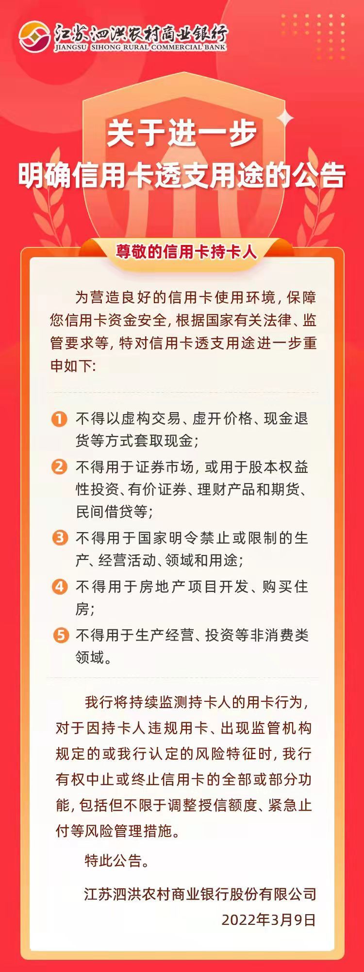 关于进一步明确信用卡透支用途的公告